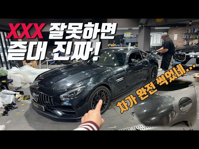 차량이 입고가 되어 파츠들을 하나씩 분해 하고 있습니다. 전체를 블랙으로 만들어야 하기때문에