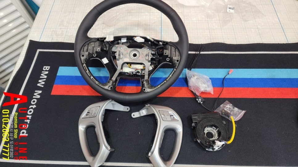 투싼iX 핸들가죽벗겨짐으로 정품 열선핸들 시공해드렸습니다